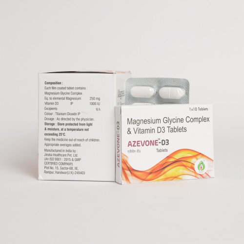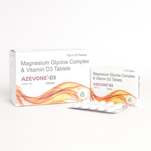 | Side Effects: | AZEVONE-D3 Tablet is generally safe when taken as recommended. However, some individuals may experience: Mild stomach upset Nausea Diarrhea (rare with magnesium supplements) If any symptoms persist, consult a healthcare professional. |