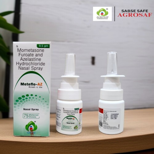 | Description: | METEFLO AZ Nasal Spray is a dual-action nasal formulation combining Mometasone Furoate 50 mcg, a corticosteroid, and Azelastine Hydrochloride 137 mcg, an antihistamine. It is used for the effective management of allergic rhinitis, providing relief from symptoms such as nasal congestion, sneezing, runny nose, and itching. Mometasone reduces inflammation, while Azelastine blocks histamine action, offering fast onset and long-lasting relief. This combination ensures comprehensive allergy control with targeted local action and minimal systemic absorption. |