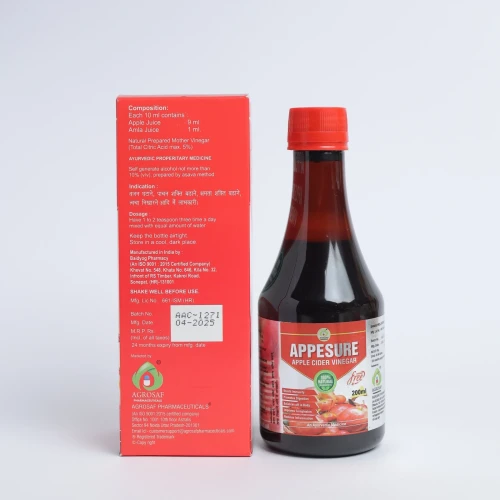 | Side Effects: | APPESURE Apple Cider Vinegar is generally safe when used as recommended, but some individuals may experience: Mild stomach irritation Acid reflux in sensitive individuals Tooth enamel sensitivity if consumed undiluted Consult a healthcare professional if symptoms persist. |