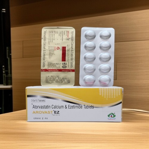 | Description: | AROVAST-EZ Tablet is a combination medication containing Atorvastatin 40 mg and Ezetimibe 10 mg, used for the management of high cholesterol and cardiovascular risk reduction. Atorvastatin belongs to the statin class of medicines and works by reducing the production of cholesterol in the liver. Ezetimibe works by decreasing the absorption of cholesterol from the intestine. Together, this combination effectively lowers LDL (bad cholesterol) and triglycerides while increasing HDL (good cholesterol) levels. AROVAST-EZ Tablet is widely prescribed to reduce the risk of heart attack, stroke, and other cardiovascular diseases, especially in patients who require stronger cholesterol control. |