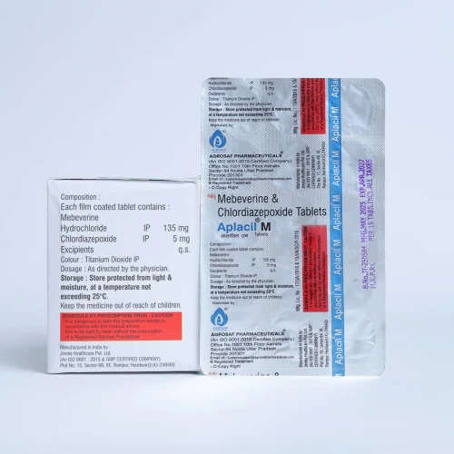 | Description: | APLACIL M Tablet is a combination medication containing Chlordiazepoxide 5 mg and Mebeverine 135 mg. It is used for the management of gastrointestinal disorders associated with anxiety, particularly irritable bowel syndrome (IBS). Chlordiazepoxide helps reduce anxiety and stress, while Mebeverine is an antispasmodic that relaxes the smooth muscles of the gut, relieving intestinal spasms and abdominal discomfort. This combination provides dual action by addressing both psychological and physical symptoms of gastrointestinal disorders. |