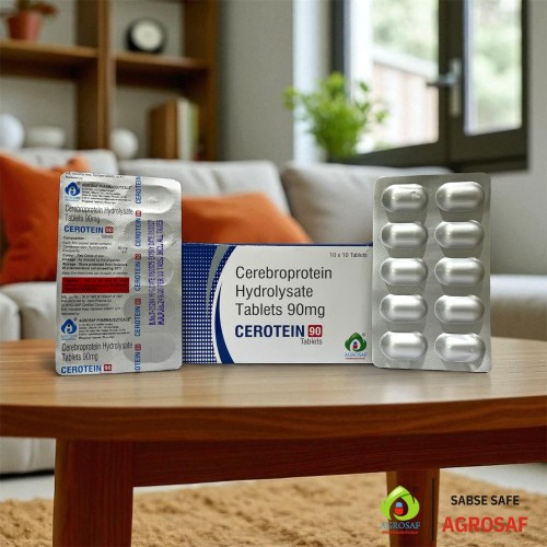 | Description: | CEROTEIN 90 Tablet contains Cerebroprotein Hydrolysate 90 mg, a neurotrophic agent used to support brain function and neurological health. It works by promoting neuronal growth, improving nerve cell repair, and enhancing brain metabolism. CEROTEIN 90 Tablet is commonly used in the management of neurological conditions such as cognitive impairment, stroke recovery, dementia, and other neurodegenerative disorders. This medication helps improve brain cell communication and supports overall cognitive performance when used under medical supervision. |