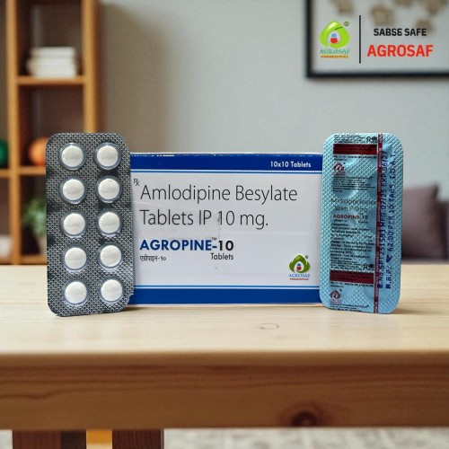 AGROPINE 10 Tablet is used to treat high blood pressure and chest pain (angina).