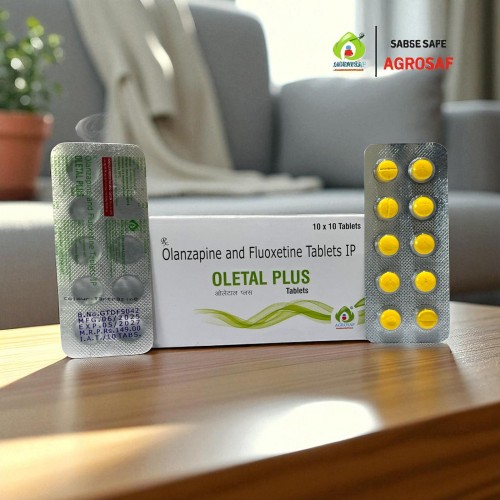 | Description: | OLETAL-PLUS Tablet is a combination medication containing Olanzapine 5 mg and Fluoxetine 20 mg. This combination is used for the treatment of certain psychiatric conditions such as **Depression associated with Bipolar Disorder and Treatment-Resistant Depression. Olanzapine is an atypical antipsychotic that helps balance neurotransmitters in the brain, improving mood, behavior, and thinking. Fluoxetine is a selective serotonin reuptake inhibitor (SSRI) antidepressant that increases serotonin levels in the brain, helping to improve mood and emotional stability. OLETAL-PLUS Tablet provides a combined therapeutic effect that helps manage depressive symptoms and stabilize mood in patients with complex psychiatric conditions. |
