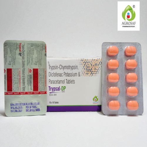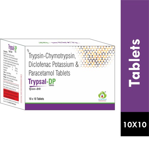 | Description: | TRYPSAL-DP Tablet is a powerful combination of anti-inflammatory, analgesic, and enzyme therapy containing Diclofenac 50mg, Paracetamol 325mg, and Trypsin-Chymotrypsin 50,000 AU. This formulation is used to relieve pain, inflammation, and swelling associated with musculoskeletal disorders, arthritis, post-surgical recovery, and trauma. Diclofenac provides potent anti-inflammatory effects, Paracetamol offers analgesic and antipyretic action, and Trypsin-Chymotrypsin aids tissue repair and reduces edema, making it ideal for accelerated recovery and improved mobility. |