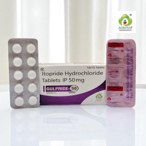 | Description: | GULPRIDE-50 Tablet contains Itopride 50 mg, a prokinetic agent used to improve gastrointestinal motility and treat digestive disorders such as Functional Dyspepsia and Gastroesophageal Reflux Disease (GERD). Itopride works by increasing the movement of the stomach and intestines, helping food move more efficiently through the digestive tract. It also reduces symptoms such as bloating, nausea, fullness after meals, and stomach discomfort. GULPRIDE-50 Tablet helps improve digestion and provides relief from various gastrointestinal symptoms. |