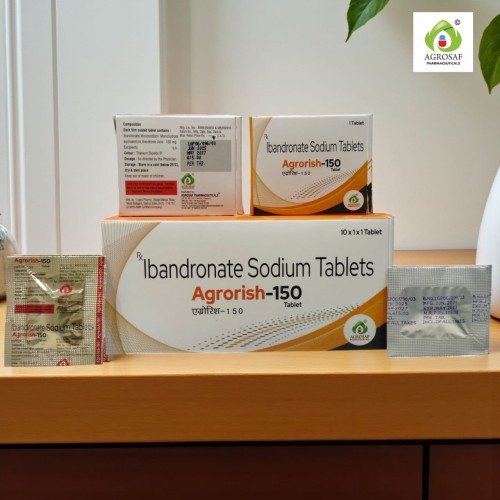| Description: | AGRORISH-150 Tablet contains Ibandronate 150 mg, a bisphosphonate medication used to treat and prevent Osteoporosis, particularly in postmenopausal women. Osteoporosis is a condition where bones become weak and fragile, increasing the risk of fractures. Ibandronate works by slowing down bone breakdown and helping maintain bone density. It helps strengthen bones and reduces the risk of fractures, especially in the spine. AGRORISH-150 Tablet is commonly prescribed as a once-monthly treatment to support long-term bone health. |