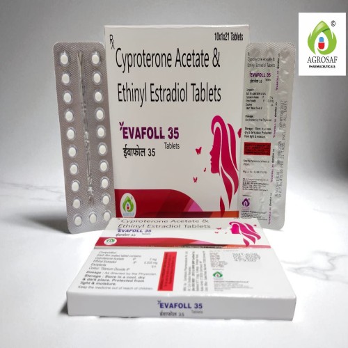 | Description: | EVAFOLL-35 Tablet is a hormonal combination medication containing Cyproterone acetate 2 mg and Ethinyl estradiol 0.035 mg. It is commonly used for the management of hormonal disorders in women, including symptoms associated with Polycystic Ovary Syndrome (PCOS) and Acne vulgaris. Cyproterone acetate works as an anti-androgen that reduces the effects of male hormones responsible for acne, excessive hair growth, and hormonal imbalance. Ethinyl estradiol is a synthetic estrogen that helps regulate menstrual cycles and maintain hormonal balance. Together, this combination helps improve skin conditions, regulate periods, and manage androgen-related symptoms. |