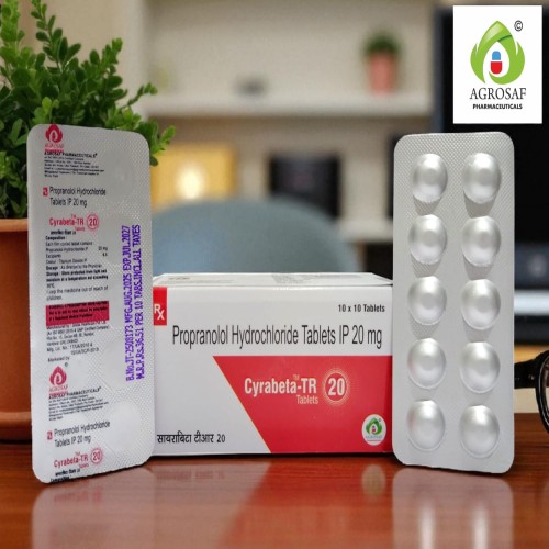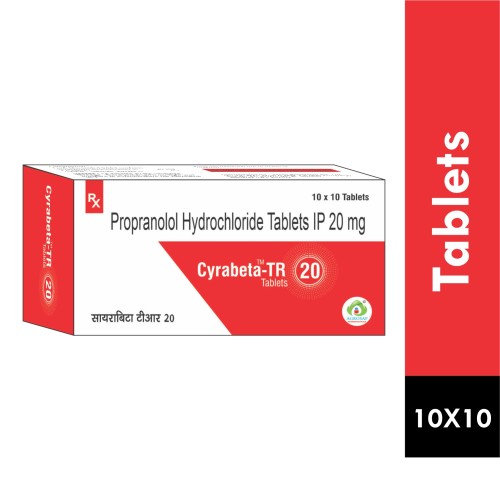 | Description: | CYRABETA TR 20 Tablet contains Propranolol hydrochloride 20 mg. It is used for the management of hypertension, angina (chest pain), arrhythmias, migraine prophylaxis, and anxiety-related conditions. Propranolol works by blocking beta-adrenergic receptors, reducing heart rate, blood pressure, and cardiac workload, thereby improving cardiovascular function and symptom control. |