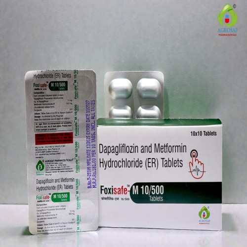 | Description: | FOXISAFE-M 10/500 Tablet is a combination antidiabetic medication containing Dapagliflozin 10 mg and Metformin Hydrochloride (Extended Release) 500 mg. It is used for the management of type 2 diabetes mellitus to improve glycemic control. Dapagliflozin works by increasing glucose excretion through urine, while Metformin reduces hepatic glucose production and enhances insulin sensitivity. This dual-action formulation provides effective and sustained blood sugar control in adult patients. |