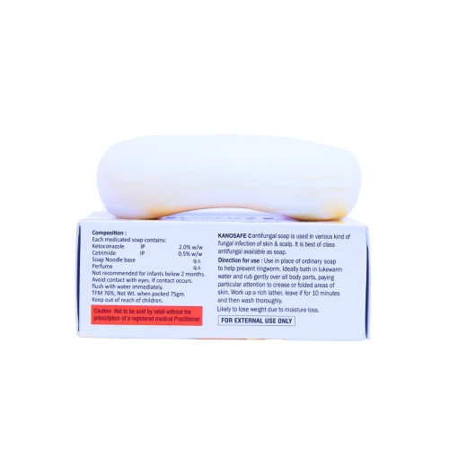 | Description: | KANOSAFE-C SOAP is a specially formulated antibacterial and skin-protective soap enriched with Vitamin C. Designed to cleanse deeply, it helps in removing dirt, oil, and impurities while nourishing the skin. Regular use promotes a healthy, radiant, and refreshed skin texture, keeping it protected from infections and environmental damage. |
