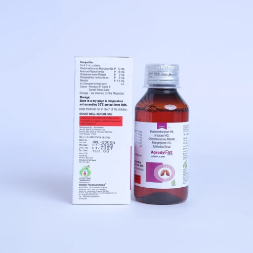 | Description: | AGRODYL AX SYRUP is an advanced formulation used to treat symptoms associated with cough, cold, and respiratory infections. This syrup combines effective ingredients that help in relieving congestion, reducing inflammation, and soothing the throat. It provides quick relief from coughing, nasal congestion, and irritation caused by respiratory conditions. Ideal for individuals experiencing discomfort due to colds or allergies, AGRODYL AX SYRUP promotes faster recovery and better respiratory health. |