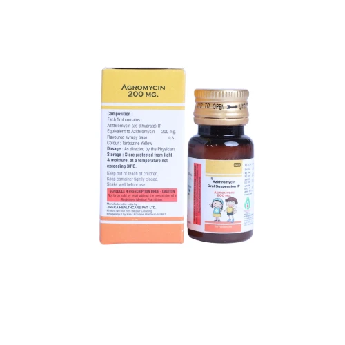 | Description: | AGROMYCIN 200mg Syrup is an oral antibiotic formulation containing Azithromycin (200mg/5ml), a macrolide class antibiotic effective against a wide range of bacterial infections. It is primarily used in children to treat respiratory tract infections, skin infections, ear infections, and some sexually transmitted infections. With once-daily dosing and a short course of therapy, AGROMYCIN ensures high patient compliance and faster recovery. |