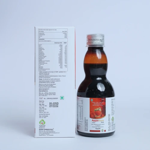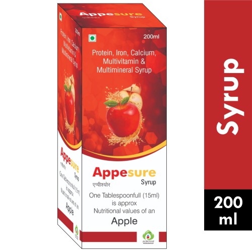 | Description: | Appesure Syrup is a nutrient-rich syrup supplement formulated to support overall growth and wellness. Each 15 ml contains proteins along with essential vitamins & minerals: Calcium (0.22 mg), Magnesium, Vitamin C (8.4 mg), Potassium, Phosphorus, Nicotinamide, Vit B5, Vit E, Vit B6, Copper, Riboflavin (Vitamin B2), Thiamine (Vitamin B1), Vitamin A (56.6 mcg), L-Lysine (10 mg), Zinc, Folic Acid and more. Designed to help replenish nutritional deficits, enhance appetite, and support immune health. Comes in a 200 ml bottle. |