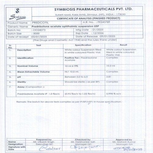 | Description: | PREDCOTIL Eye Drop contains Prednisolone 10mg, a corticosteroid used to treat inflammation in the eyes caused by infections, allergies, or injury. It helps reduce redness, swelling, itching, and discomfort. It is typically prescribed after eye surgeries or for conditions like uveitis and conjunctivitis. |