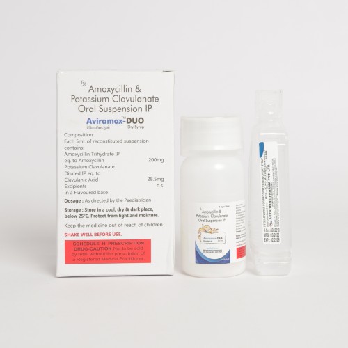 | Description: | AVIRAMOX DUO DRY SYRUP is a powerful combination of Amoxycillin and Clavulanic Acid, designed for effective treatment of bacterial infections in children. Amoxycillin is a penicillin-type antibiotic that kills bacteria, while Clavulanic Acid enhances its effectiveness by inhibiting beta-lactamase enzymes. This combination is commonly used to treat infections of the respiratory tract, urinary tract, skin, and soft tissues in pediatric patients. |