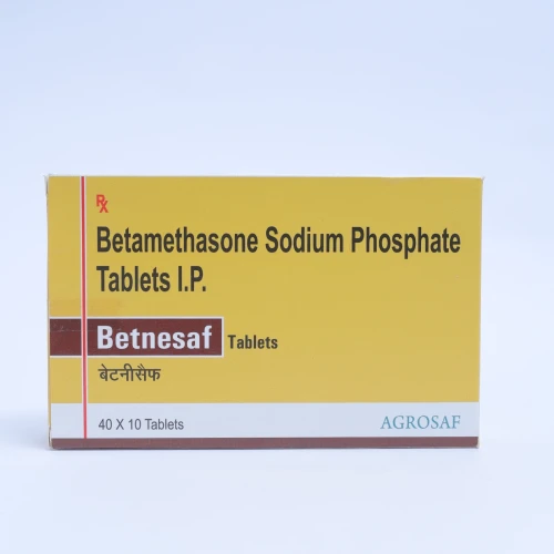 | Description: | BETNESAF Tablet contains Betamethasone 0.5 mg, a potent corticosteroid used to treat various inflammatory and allergic conditions. It works by suppressing the immune response and reducing inflammation, swelling, redness, and itching in the body. This medication is commonly prescribed for conditions such as severe allergies, skin disorders, rheumatic diseases, and certain autoimmune conditions. BETNESAF tablets are formulated for effective systemic relief when corticosteroid therapy is required. |