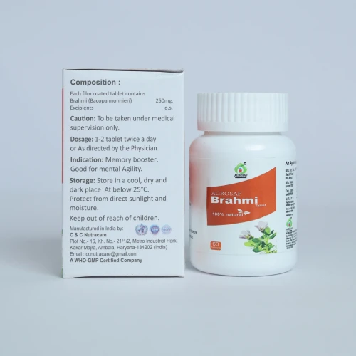 | Description: | AGROSAF BRAHMI TABLET is a premium herbal brain tonic formulated with Brahmi (Bacopa monnieri) whole plant extract – 250 mg per tablet. Brahmi is renowned in Ayurvedic medicine for its potent nootropic and neuroprotective properties. This supplement supports memory enhancement, stress reduction, and mental clarity, making it ideal for students, professionals, and individuals experiencing cognitive fatigue. |