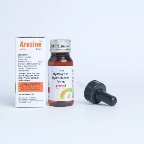 | Description: | AROZINE Drop is an oral solution containing Hydroxyzine 6mg, an antihistamine used for the symptomatic relief of anxiety and tension, and for managing allergic conditions such as urticaria, dermatitis, and pruritus. It also helps control nausea and vomiting due to motion sickness and post-operative conditions. Safe for pediatric use under medical supervision. |