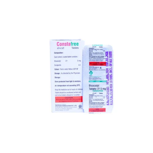 | Description: | CONSTAFREE Tablet contains Bisacodyl 5 mg, a stimulant laxative used to treat occasional constipation and to support bowel evacuation before certain medical procedures. It works by stimulating the muscles of the intestines, helping to increase bowel movements and facilitate easier stool passage. CONSTAFREE Tablet is commonly recommended for short-term relief of constipation and helps restore normal bowel function when used as directed. |