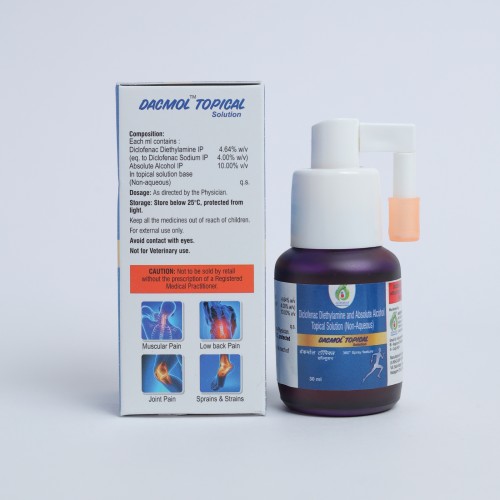 | Description: | DACMOL TOPICAL SOLUTION is a powerful external analgesic designed to provide rapid relief from muscular and joint discomfort. Its advanced formula works by penetrating deep into the affected area, reducing inflammation, soothing pain, and promoting faster recovery from strains, sprains, and minor injuries. Non-greasy and easy to apply, DACMOL ensures comfort and mobility for daily activities. |