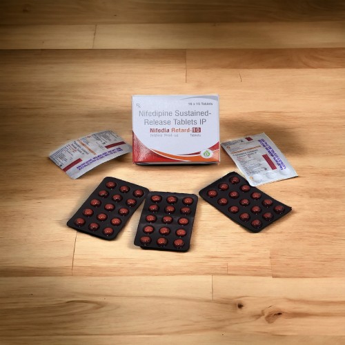 | Description: | NIFEDIA RETARD-10 Tablet contains Nifedipine Sustained Release 10mg, a calcium channel blocker used for the treatment of hypertension (high blood pressure) and angina pectoris (chest pain). Nifedipine works by blocking calcium entry into vascular smooth muscle cells, resulting in relaxation of blood vessels, improved blood flow, and reduced blood pressure. The sustained-release (retard) formulation ensures gradual drug release, providing consistent therapeutic effect over an extended period. It is commonly used for long-term cardiovascular management and prevention of angina episodes. |
