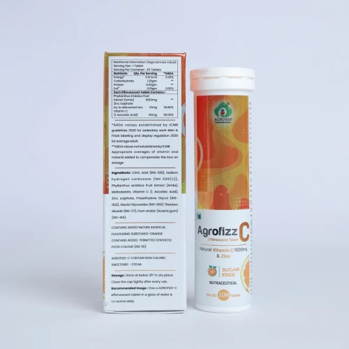 | Description: | AGROFIZZ C EFFERVESCENT TABLET is a high-potency immunity booster formulated with Amla Extract (1000mg), Vitamin C (40mg), and Zinc (10mg). This effervescent tablet is designed for fast absorption and better bioavailability, making it an essential supplement for preventive healthcare in today's demanding environment. |