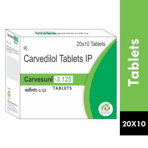CARVESURE 3.125 Tablet is used to treat high blood pressure and chronic heart failure and is often prescribed as a starting dose in carvedilol therapy.