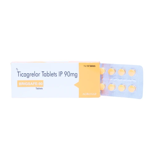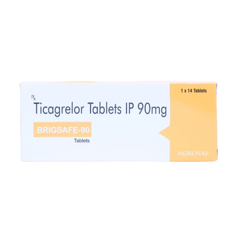 | Description: | BRIGSAFE 90mg Tablet contains Ticagrelor 90mg, an oral antiplatelet medication used for the prevention of atherothrombotic events such as heart attack and stroke in patients with acute coronary syndrome (ACS) or a history of myocardial infarction. Ticagrelor works by inhibiting platelet aggregation, preventing blood clots from forming in blood vessels. It is commonly prescribed along with low-dose aspirin for enhanced cardiovascular protection. |