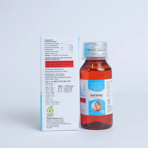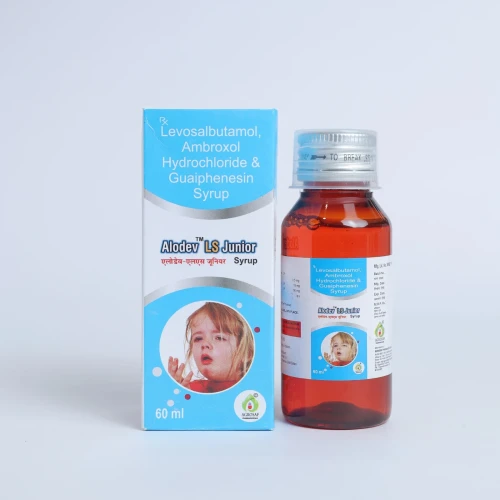 | Description: | ALODEV LS JUNIOR SYRUP is a powerful pediatric cough formulation designed to provide fast and effective relief from productive cough. It combines Levosalbutamol (a bronchodilator), Ambroxol Hydrochloride (a mucolytic agent), and Guaiphenesin (an expectorant) to help relieve bronchospasm, reduce mucus viscosity, and promote effective expectoration. Ideal for children suffering from wet cough, chest congestion, and respiratory distress due to allergic or infective conditions. |