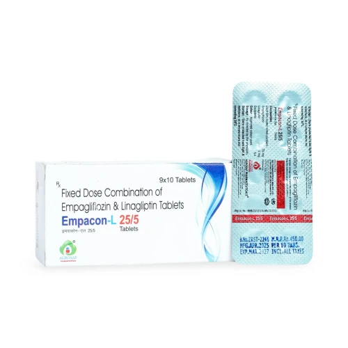 | Description: | EMPACON-L 25/5 Tablet is a combination of Empagliflozin 25mg (SGLT2 inhibitor) and Linagliptin 5mg (DPP-4 inhibitor), used for the management of type 2 diabetes mellitus. Empagliflozin works by increasing glucose excretion through urine, while Linagliptin enhances insulin secretion and decreases glucagon levels. The higher strength of Empagliflozin provides stronger glycemic control, making it suitable for patients requiring intensified therapy. |