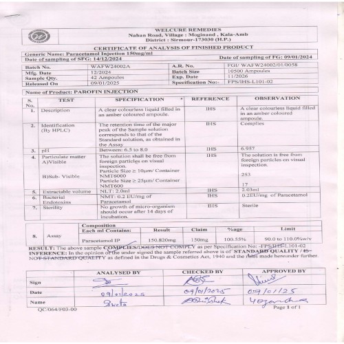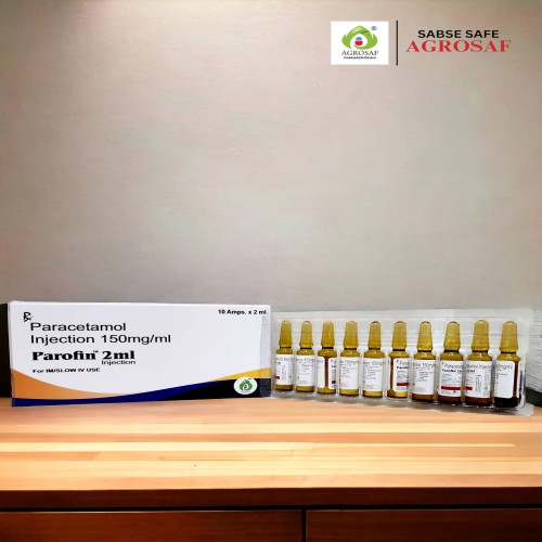 | Description: | PAROFIN 2ml Injection is a sterile, non-opioid analgesic and antipyretic formulation containing Paracetamol (150mg/ml). It is used for the short-term treatment of moderate pain, especially post-operative pain, and fever when oral administration is not feasible. It provides rapid and effective relief with minimal gastrointestinal side effects. |