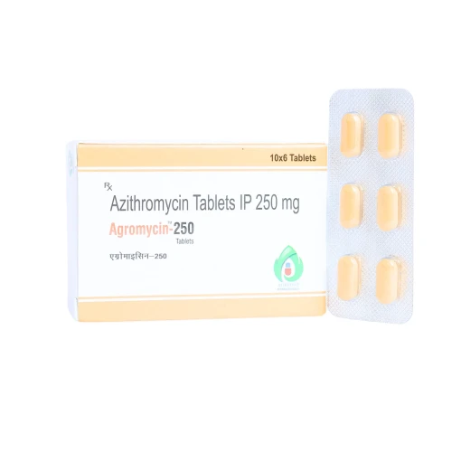 | Description: | AGROMYCIN 250 mg is a macrolide antibiotic used to treat a variety of bacterial infections, including respiratory infections, ear infections, sexually transmitted infections, and skin infections. It works by inhibiting bacterial protein synthesis, and it is effective against a wide range of bacterial species. Azithromycin is typically taken once daily due to its long half-life, making it convenient for short treatment regimens. However, it should be used cautiously in individuals with a history of heart arrhythmias or liver disease due to potential side effects such as QT prolongation and |