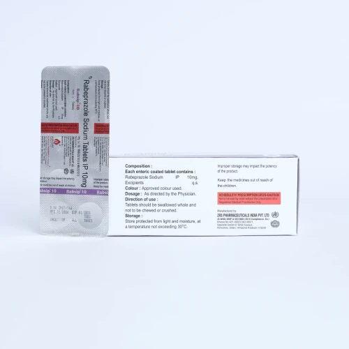 | Description: | RABSIP-10 Tablet contains Rabeprazole 10 mg. It is used for the treatment of acid-related disorders such as gastroesophageal reflux disease (GERD), peptic ulcers, and Zollinger–Ellison syndrome. Rabeprazole works by inhibiting the proton pump in the stomach lining, thereby reducing acid production and providing relief from acidity and heartburn. |