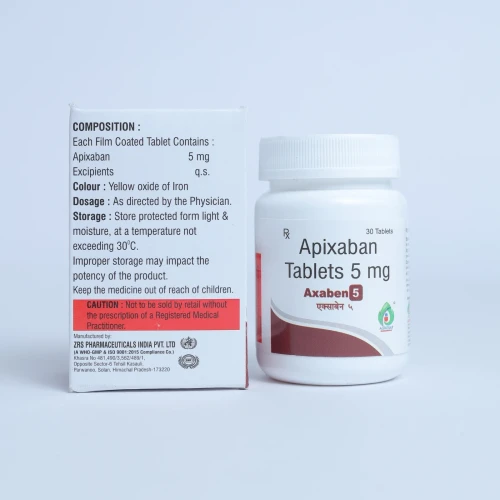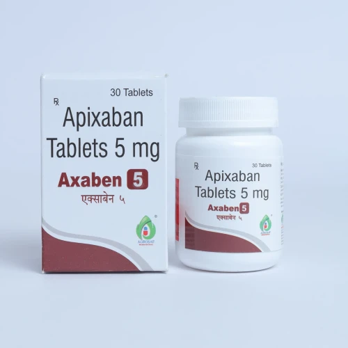 | Description: | AXABEN 5 Tablet contains Apixaban 5 mg, an oral anticoagulant (blood thinner) used to prevent blood clots and reduce the risk of stroke. Apixaban works by selectively inhibiting Factor Xa, a key enzyme in the coagulation cascade, thereby preventing the formation of harmful blood clots. It is commonly prescribed for patients with atrial fibrillation, those undergoing hip or knee replacement surgery, and individuals at high risk of deep vein thrombosis (DVT) or pulmonary embolism (PE). AXABEN 5 Tablet provides effective anticoagulation therapy without the need for routine blood monitoring, ensuring convenience and safety for long-term use. |