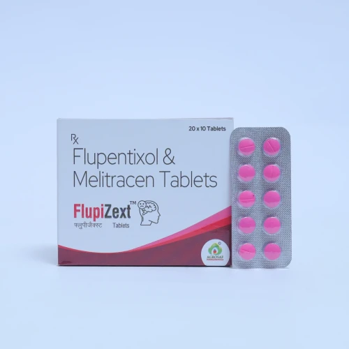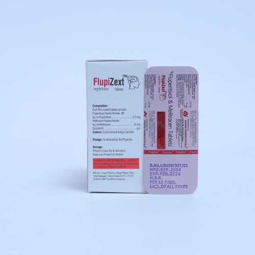 | Description: | FLUPIZEXT Tablet is a combination psychotropic medication containing: Flupentixol 0.5mg – a typical antipsychotic with anxiolytic and mood-stabilizing properties. Melitracen 10mg – a tricyclic antidepressant that helps improve mood and emotional balance. This combination is used for the management of anxiety, depression, and psychosomatic disorders. FLUPIZEXT provides rapid symptom relief, improves mood, reduces anxiety, and enhances overall mental well-being. |