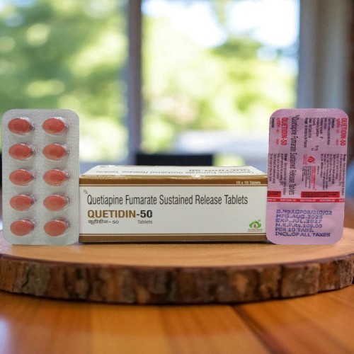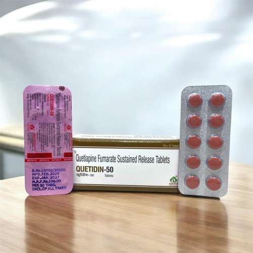 | Description: | QUETIDIN 50 Tablet contains Quetiapine 50 mg. It is used in the treatment of psychiatric disorders such as schizophrenia, bipolar disorder, and major depressive disorder (as adjunct therapy). Quetiapine works by balancing neurotransmitters like dopamine and serotonin in the brain, helping to control symptoms such as hallucinations, mood swings, and depressive episodes. |