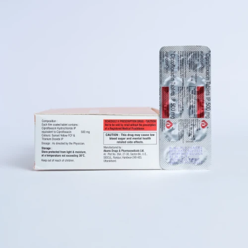 | COMPOSITION: | Ciprofloxacin (500mg) |