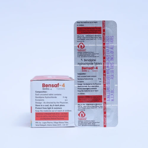 | How to Use: | Take BENSAF 4 Tablet as prescribed by a healthcare professional. Usually taken once daily. Swallow the tablet with a glass of water. It may be taken with or without food. Take the medicine at the same time every day for consistent blood pressure control. |