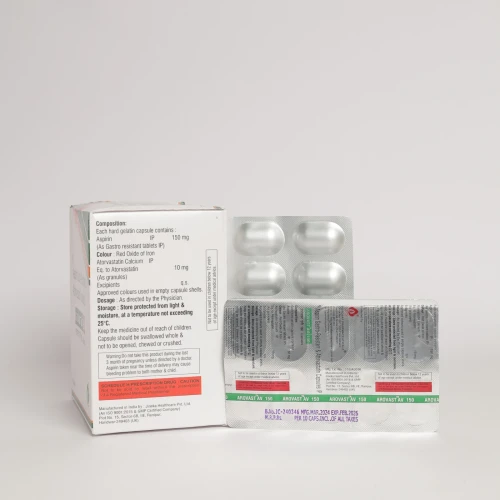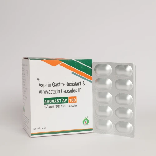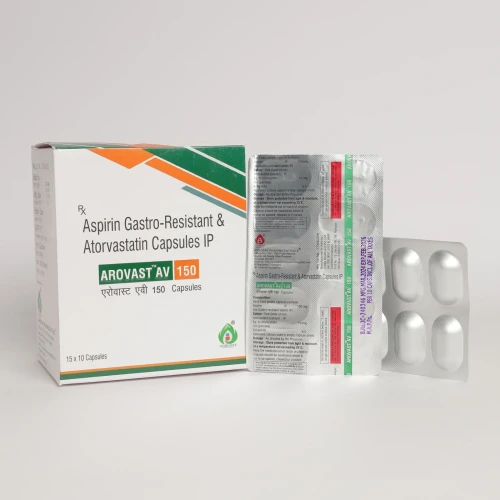 | Description: | AROVAST AV 150 Capsule is a combination medication containing Atorvastatin and Aspirin, designed to reduce the risk of cardiovascular events such as heart attack and stroke. Atorvastatin belongs to the statin group and works by lowering bad cholesterol (LDL) and triglycerides while increasing good cholesterol (HDL). Aspirin acts as an antiplatelet agent that prevents blood clot formation. This dual-action formula is widely prescribed for patients with a high risk of heart disease. |