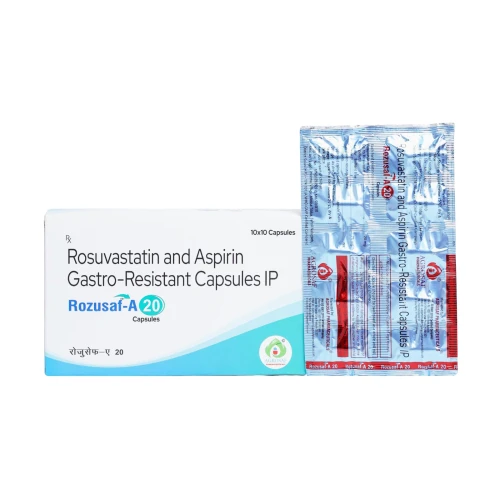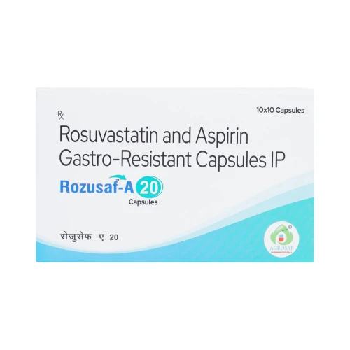 | Description: | ROZUSAF A 20mg Capsule is a combination medicine containing Rosuvastatin 20 mg, a potent statin that helps lower cholesterol, and Aspirin 75 mg (enteric-coated pellets), which helps prevent blood clots. This formulation is designed for patients at risk of cardiovascular events, such as heart attack or stroke, by controlling lipid levels and reducing platelet aggregation. It is ideal for patients requiring both cholesterol management and cardioprotective therapy. |