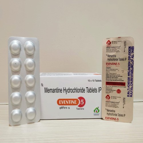 | Description: | EVENTINE 5 Tablet contains Memantine Hydrochloride 5mg, a medication used in the management of moderate to severe Alzheimer’s disease. Memantine is an N-methyl-D-aspartate (NMDA) receptor antagonist that regulates the activity of glutamate, a neurotransmitter involved in learning and memory. By modulating glutamate signaling, EVENTINE 5 helps improve cognitive function, daily living activities, and overall quality of life in patients with Alzheimer’s disease. |