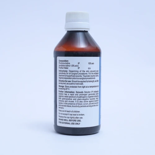 | Description: | BETASAFE 10% SOLUTION is a trusted topical antiseptic solution designed to prevent infections and promote healing in minor cuts, wounds, abrasions, and skin irritations. Its powerful antiseptic action helps protect against harmful bacteria, ensuring safe and hygienic first-aid care. Ideal for both household and clinical use. |