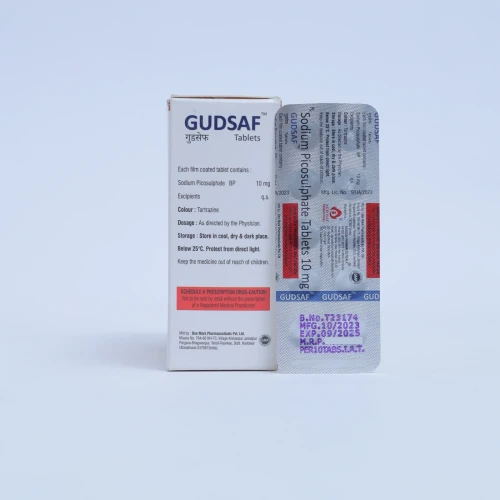 | Description: | GUDSAF Tablet contains Sodium Picosulphate 10mg, a stimulant laxative used for the treatment of constipation. It works by stimulating the bowel muscles, promoting intestinal movement, and facilitating easy passage of stool. This medication is commonly used for short-term relief of constipation and for bowel preparation before medical procedures. It provides effective and predictable results, usually within 6–12 hours of administration. |