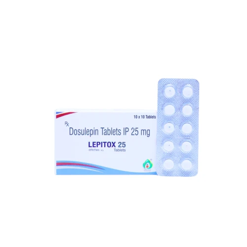 | Description: | LEPITOX 25 Tablet contains Dosulepin 25mg, a tricyclic antidepressant (TCA) used in the treatment of depression and anxiety disorders. It works by increasing the levels of neurotransmitters such as serotonin and norepinephrine in the brain, helping to improve mood, reduce anxiety, and enhance emotional stability. The lower strength is often used for dose titration or in patients requiring milder therapy. It may also be used in the management of neuropathic pain. |