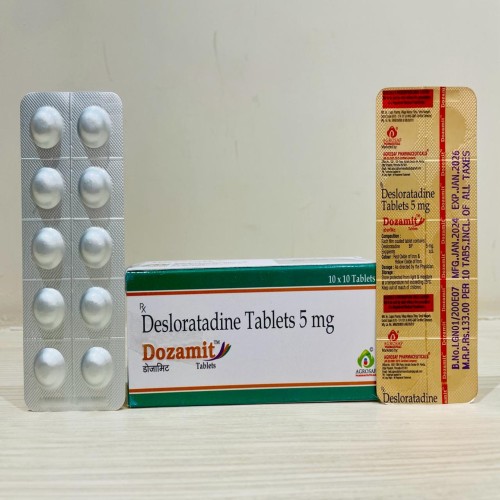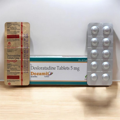 | Description: | DOZAMIT Tablet contains Desloratadine 5mg, a second-generation antihistamine used to relieve symptoms associated with allergic conditions. It effectively treats allergic rhinitis (hay fever) and chronic urticaria (hives) by blocking histamine, a substance responsible for allergic reactions. The formulation is non-drowsy, making it suitable for daytime use and improving patient comfort without sedation. |