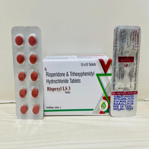| Description: | Rispexyl LS3 Tablet is a combination of Risperidone 3 mg and Trihexyphenidyl 2 mg. It is used for the treatment of schizophrenia and other psychotic disorders. Risperidone helps control symptoms by balancing dopamine and serotonin levels, while Trihexyphenidyl reduces the risk of extrapyramidal symptoms (EPS) such as tremors and stiffness associated with antipsychotic therapy. |