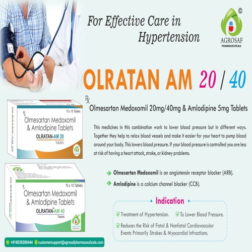| Description: | OLRATAN AM 20 Tablet contains a combination of Olmesartan Medoxomil 20 mg and Amlodipine 5 mg. This dual-action antihypertensive formulation is designed to manage high blood pressure (hypertension) more effectively. Olmesartan relaxes blood vessels by blocking angiotensin II, while Amlodipine reduces vascular resistance by relaxing heart and blood vessel muscles, resulting in better blood pressure control. |