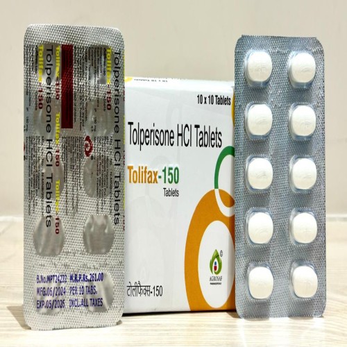 | Description: | TOLIFAX-150 Tablet contains Tolperisone 150mg, a centrally-acting muscle relaxant used for the relief of muscle spasticity, stiffness, and pain associated with conditions like muscle injuries, neurological disorders, and spastic paralysis. Tolperisone works by inhibiting nerve impulses in the central nervous system, relaxing skeletal muscles, and improving mobility and comfort. |