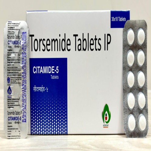 | Description: | CITAMIDE 5mg Tablet contains Torsemide 5mg, a loop diuretic used for the treatment of edema (fluid retention) associated with heart failure, kidney disease, or liver cirrhosis, and for the management of hypertension. It works by increasing urine output, helping the body eliminate excess salt and water, thereby reducing swelling and lowering blood pressure. |
